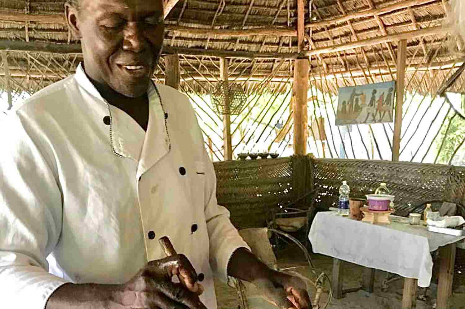 I Jambiani ligger Okala som är en liten och charmig restaurang. Restaurangen är till störst del gjord av kokospalmer. Namnet kommer ifrån kocken Mr Okala som har lärt sig att laga mat av sin farmor. Okala brinner för hållbarhetsfrågor och alla ingredienser är från närområdet. Han kommer att visa er metoderna för swahili-cooking och tillsammans kommer ni att inta en härlig och smakrik måltid.