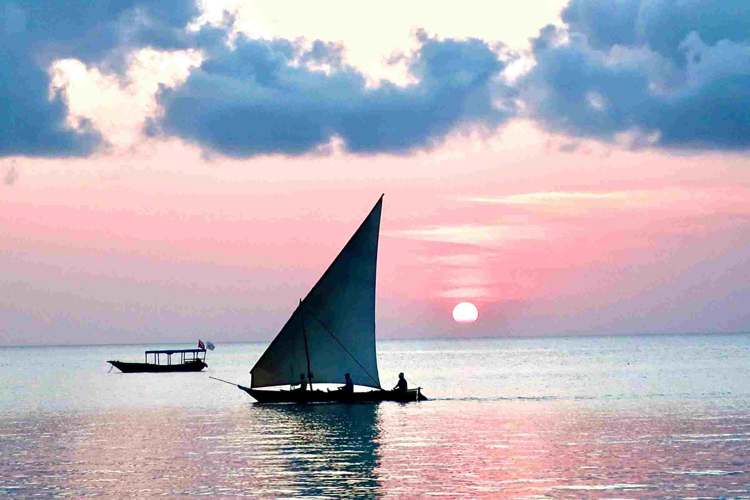 Solnedgångarna på Zanzibar är magiska. Att dessutom uppleva dem från en dhow i Indiska oceanen är något utöver det vanliga. Dhow är den traditionella träbåt som används av lokalbefolkningen för främst fiske. Med vind i seglen kan ni njuta av den röda horisonten och det är ett perfekt tillfälle att ta fina bilder. På båten serveras ni dryck, frukt och snacks. Önskar ni så kan ni också lägga till en BBQ på stranden.