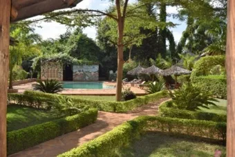 På hotellet finns en porlande flod som rinner längs ena sidan av området. Det är en plats skapad för total avkoppling och ett utmärkt boende för att landa efter en safari. I trädgården kan ni ofta se både fåglar och små apor som rör sig fritt, vilket bidrar till den rofyllda atmosfären.