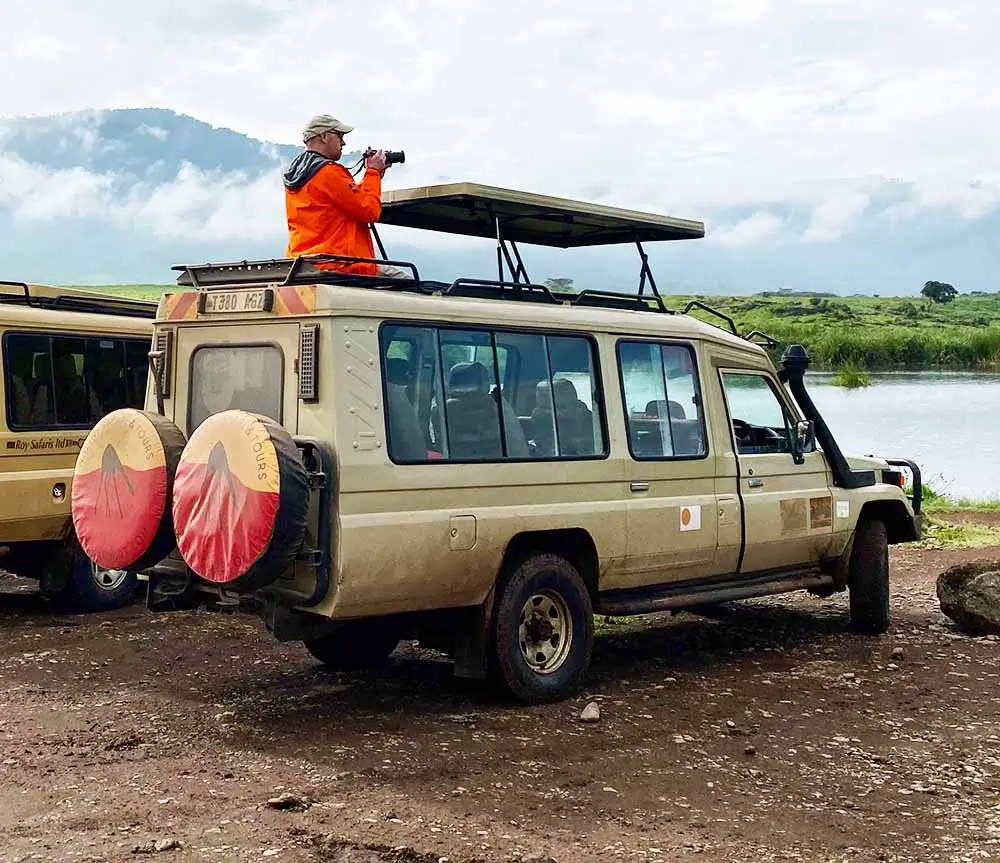 Vi använder fyrhjulsdrivna Toyota Land Cruisers för alla våra safariturer i Tanzania. För att säkerställa hög kvalitet och driftsäkerhet går varje jeep igenom service efter varje avslutad resa. Vägarna till parkerna är ofta asfalterade, men inne i parkerna är underlaget mer ojämnt, vilket gör färden lite skumpig. Våra fordon är dock utrustade med bekväma mjuka säten för en så behaglig upplevelse som möjligt.